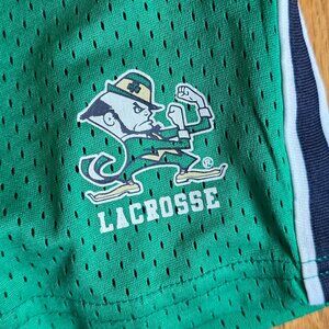 Set of 2 lacrosse shorts. Boy's size large (16-18). Pull on style, pockets. Mesh material. Drawstring waist. Notre Dame and Johns Hopkins.