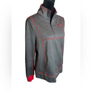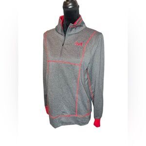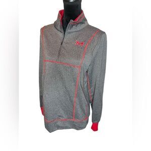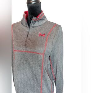 Keywords: Colosseum, women's jacket, charcoal, herringbone, quarter-zip, embroidered logo, casual, sports, fall, spring, pre-owned, Maryville University, long sleeve, regular fit, soft fabric.