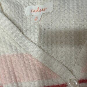COLSIE, Button Down Waffle Knit Cardigan, White/Pinks, Women's XL