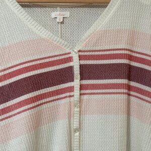 Soft and Cozy Button Down Cardi from Colsie with pink stripe detail. The ultimate, coziest sweater for lounging or shopping around town.