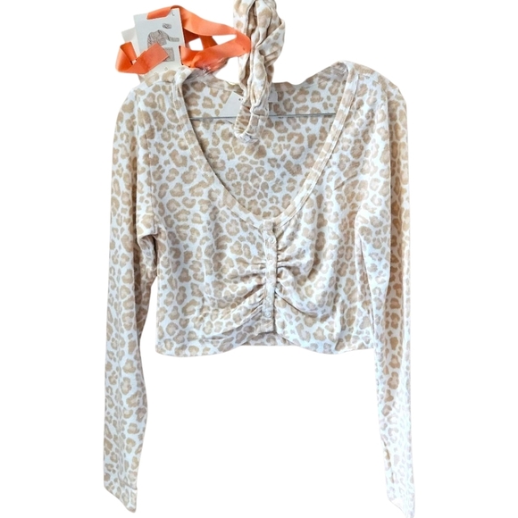 Embrace comfort and style with this leopard print long sleeve crop top, shorts , & cute headband. Perfect for lounging or a casual day out.These will be your go to Pj's because they're soft as butter & Super Cozy.