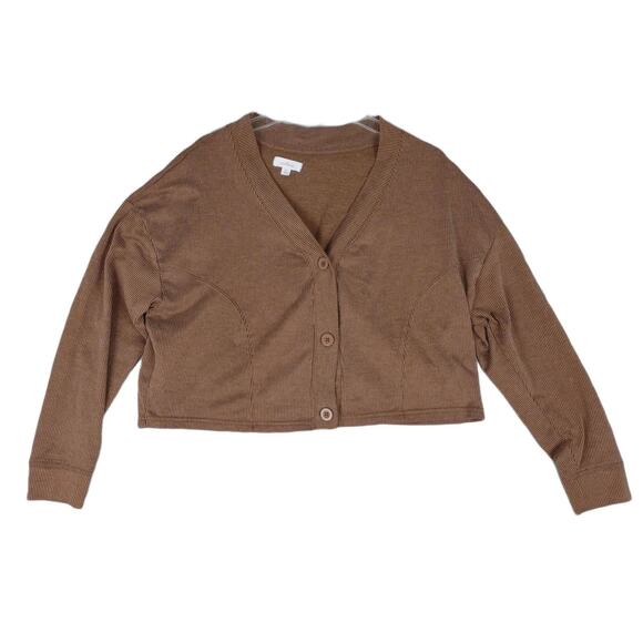 COLSIE Women's XL Ribbed Cropped Lounge Cardigan Top Brown Cozy Baggy Oversize