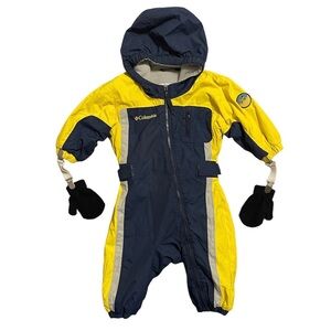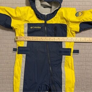 COLUMBIA 12 MONTHS INFANT SNOWSUIT, NAVY BLUE & YELLOW, DOG ON IT | EUC | measurements in pictures