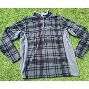 COLUMBIA 1/4 Zip Pullover Blue Plaid Fleece Sweater Jacket men’s L
