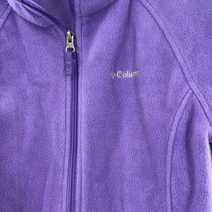 COLUMBIA BIG GIRLS BENTON SPRING FLEECE JACKET PURPLE GIRLS LARGE (14-16) GOOD USED CONDITION HAS ON BOTTOM TAG IN PHOTO WEAR YOU PUT KIDS NAME IS WRITTEN ON TAG