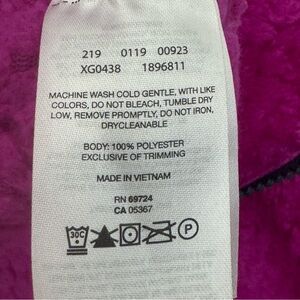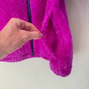 Girls Large 14/16. See photo of brand size chart. I believe the color is “Bright Plum” - A Magenta Pink. Great condition. Washed and ready to wear! The only signs of wear it seems are on the inside where the fleece seems a tiny bit thinner in some places - see last photo for zoomed in example. Not sure if this is how it came originally.