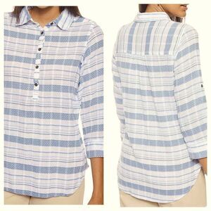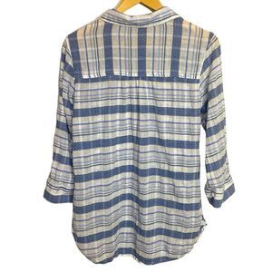 COLUMBIA Gauze Striped Roll-Tab Sleeve Tunic Blouse