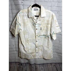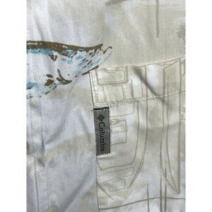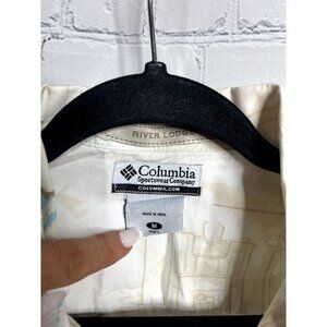 COLUMBIA MENS RIVER LODGE FISHING THEMED BUTTON DOWN SHORT SLEEVE SHIRT SZ (M)