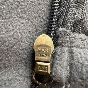 It has a full zipper that zips up to a collar! It has long sleeves and 2 front zippered pockets!! There is a zippered pocket on the left chest. It is fleece inside and out! The Columbia name and logo is on the left chest.
