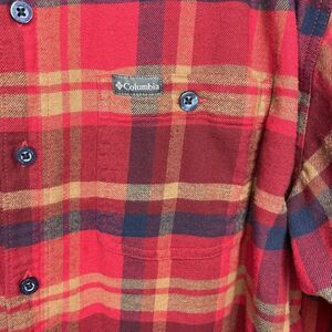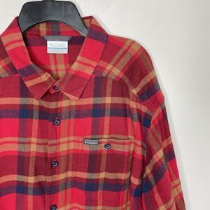 COLUMBIA Mens Red Plaid Flannel Button-Up Long-Sleeve Shirt Sz XL Cotton-Stretch