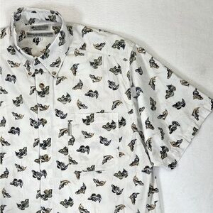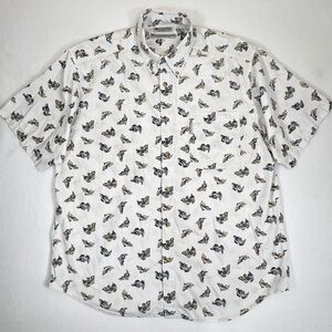 COLUMBIA Men’s White All Over Pattern Fish Print Short Sleeve Button Down