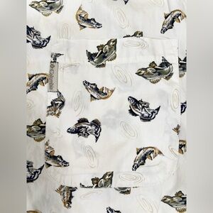 COLUMBIA Men’s White All Over Pattern Fish Print Short Sleeve Button Down Size L