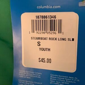 COLUMBIA Omni Shade Steamboat Rock L/S Green Sunguard Shirt Youth Boys COLOR: GREEN / DARK GREY / WHITE STYLE # 1878861346