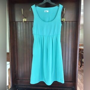 COLUMBIA Omni-Shade Aqua Blue Sleeveless Dress Empire Waist Pockets | Size M