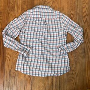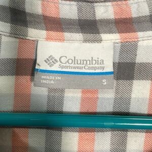 COLUMBIA Plaid Button Down Shirt Orange Grey Women’s Small Outdoors Hiking Fall