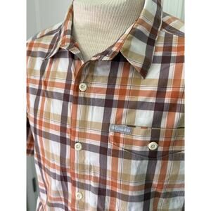 COLUMBIA SHORT SLEEVE BUTTON UP BROWN PLAID FRONT BREAST POCKET MENS MEDIUM