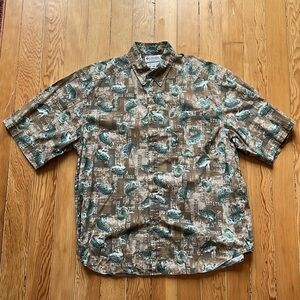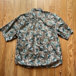 COLUMBIA SPORTSWEAR Men's Short Sleeve Button Down Graphic Fish Shirt Large