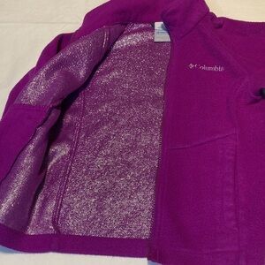 Pretty pink color Columbia zippered sweater with pockets. Girls size XS. Gently used, good condition.
