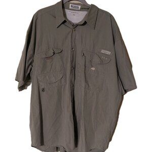 COLUMBIA Sportswear PFG Short Sleeve Gray Vented Fishing Shirt Size XXL