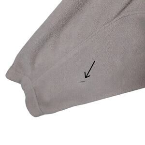 -Features: Soft lightweight fleece in a taupe shade, long sleeves, omni-dry, upper mesh-lined zippered pocket, pullover with 1/2 length zipper