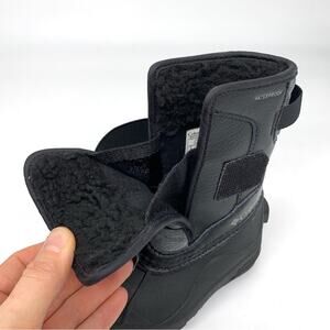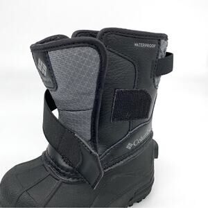 Columbia Toddler Bugaboot Celsius Strap Snow Boots in black and gray. Slip on style with hook and loop closure, 400g insulation, waterproof. Great condition!