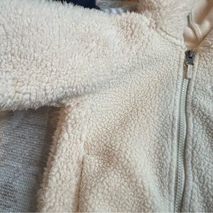 Gently used toddler Columbia Sherpa jacket. Off white color, some wear from washing but in otherwise great condition. Hood with ears. Size 12-18 months.