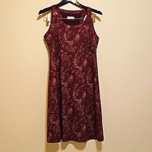 COLUMBIA WOMEN'S BURGUNDY PRINTED SLEEVELESS COLD BAY DRESS S