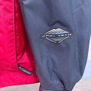 COLUMBIA Waterproof Nylon Rain Jacket Red Gray Omni-Tech Mesh Lined Mens Large