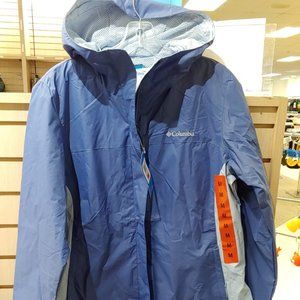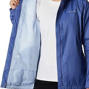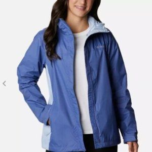 COLUMBIA Women Waterproof Sleeker Fabric Rain Jacket With Hood-- Blue (Faded Sky