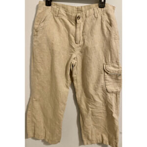 COLUMBIA XCO Pants Women's 10 Cargo Cropped Capri Hiking Linen Blend Beige N652
