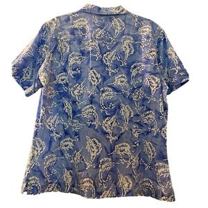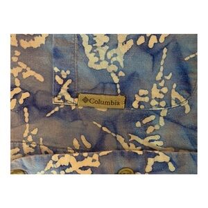 COLUMBIA button down top, short sleeves, blue and white 100% cotton.Coastal.