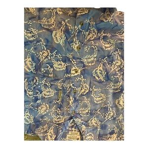 Fresh and fun, this top is ready for warm weather. Short sleeves, boxy. Buttons all the way down. All cotton. Straight hem and two small slits on the sides.