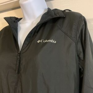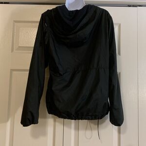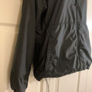 Good condition, polyester fleece lined, cinch waist, elastic banded wrist, pull cord hood, and hand pockets