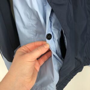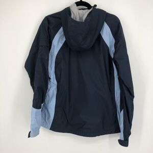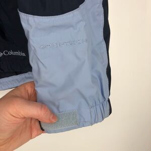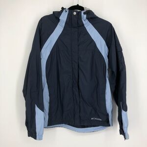 Columbia blue waterproof windbreaker hooded jacket. Size womens Large.