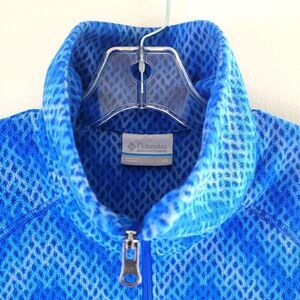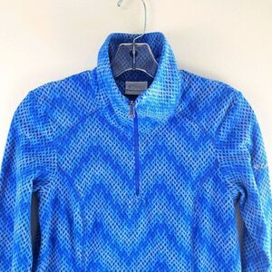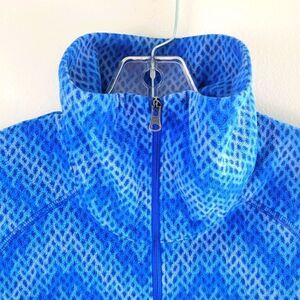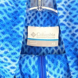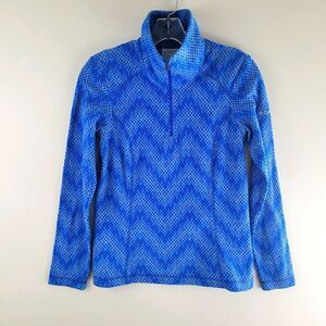 Bright blue geometric chevron pattern Light warm layer for cool days of spring Size XS In excellent pre-owned condition