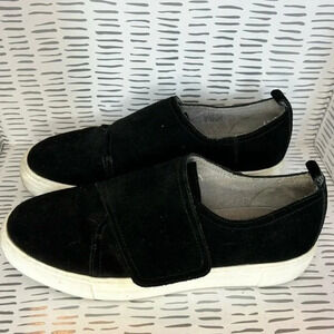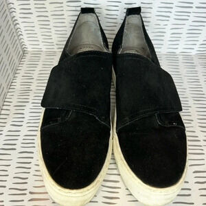 Great condition. Black suede platform sneakers with hook and loop closure. Platform is not quite 1.5 inches.