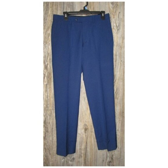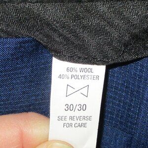 Mens size 30x30 blue mini windowpane Combatant Gentlemen dress pants. They are 60% wool and 40% polyester. They close with a zipper and a metal slide with a button off to the side and have pockets in the front and the back. They are dry clean only and are in good preowned condition but may have been hemmed. They may need to be ironed after shipping. Please see attached pictures for measurements. If you have any questions let me know.
