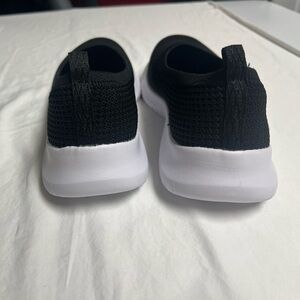 Lightweight low-top knit loafer style. Like brand new. Maybe worn twice. Comfortable and stylish black and white slip-on shoes for ladies. Perfect for everyday wear.