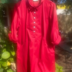 Size medium red shirt dress with roll up sleeves in very good condition