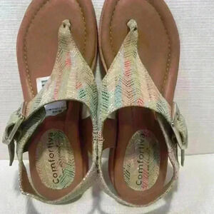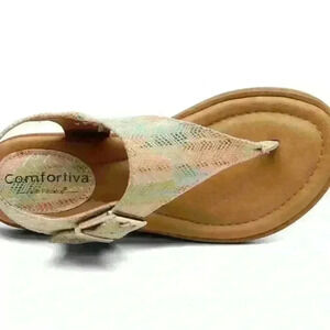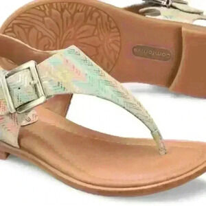 COMFORTIVA Women's Size 6.5W DAFNEY Leather Thong Sandal Green/Multi
