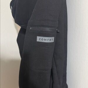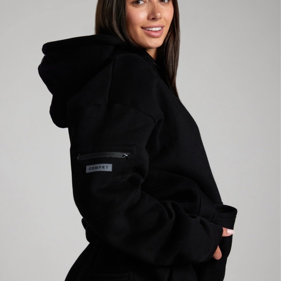 Wrap yourself in Comfrt and unplug with Airplane Mode. Made from our ultra-soft Combed Cotton Blend™, this hoodie is built for long flights and even longer naps. A built-in contoured eyemask lets you snooze in peace, while zip sleeve pockets keep your AirPods close. Hidden compartments inside the kangaroo pocket store your passport, ID, and cash securely. Finished with an oversized, double-lined hood for total comfort—no matter where you land.