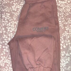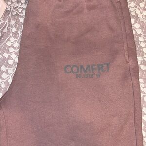 Stylish sweatpants with 'COMFRT' logo. Comfortable and trendy. Color: Orchid. First picture is the actual color, other pictures are actual pants. Perfect condition, worn once. No stains or rips