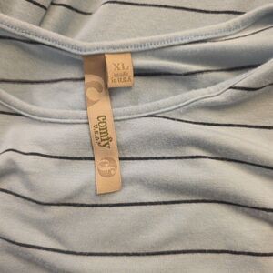 COMFY USA Handkerchief Hem Blue Striped Tunic Size XL Lagenlook Made in USA