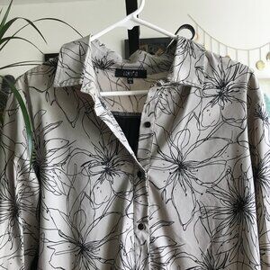 COMFY USA size L Beige Floral Stretch Lagenlook Pleated Back A-Line Tunic Top