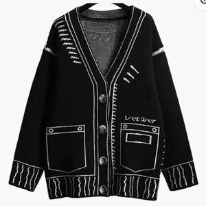 COMIC EFFECT CONTRAST KNIT CARDIGAN BLACK & WHITE ONE SIZE