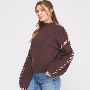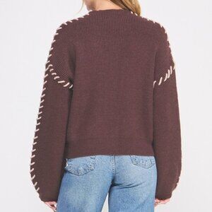 COMING SOON BOOK WORM BROWN OUT STITCH SWEATER