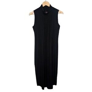 COMMANDO Black Sleeveless Midi Dress Large Mock Neck Micro Modal Spandex Stretch