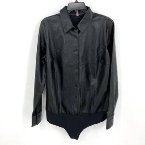 COMMANDO Women's Faux Leather Bodysuit Large Black Lightweight Button Down NWT