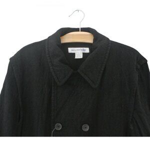 COMME DES GARCONS mens Black Pea Coat NWT L crinkle wool Open underarms SHIRT
