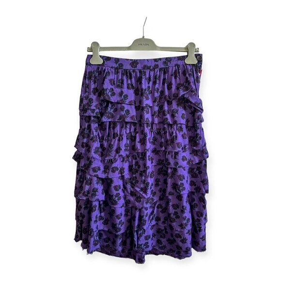 COMME DES GARÇONS Tricot Floral Print Wool Tiered Midi Skirt